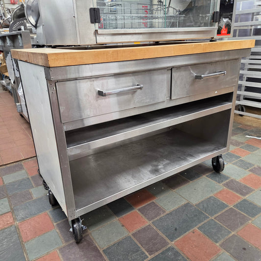[USED] Custom 48" x 30" Walnut Wood Butcher Block Stainless Steel Cabinet w/ Drawers