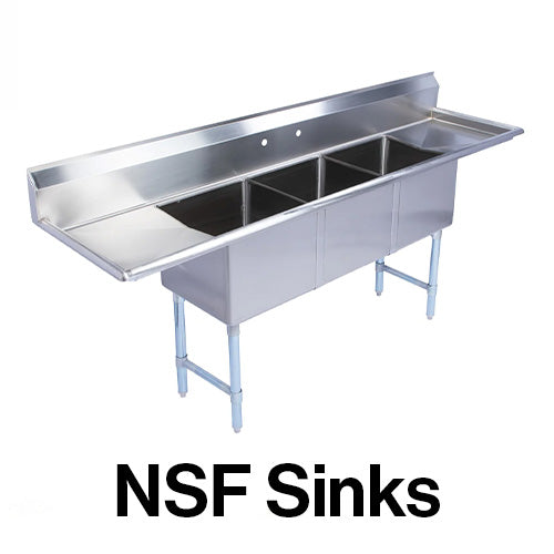 Armor 110" 18-Gauge Stainless Steel Three Compartment Commercial Sink with Right & Left Drainboards - 24" x 24" x 12" Bowls