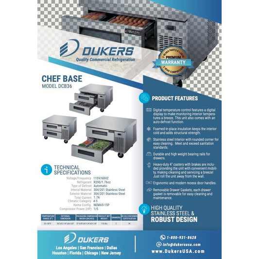 Dukers DCB36-D2 36" Chef Base Refrigerator with 2 Drawers