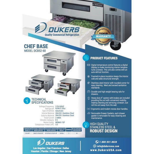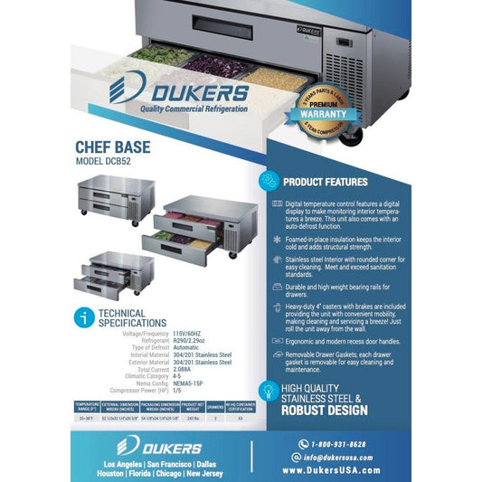 Dukers DCB52-D2 52" Chef Base Refrigerator with 2 Drawers