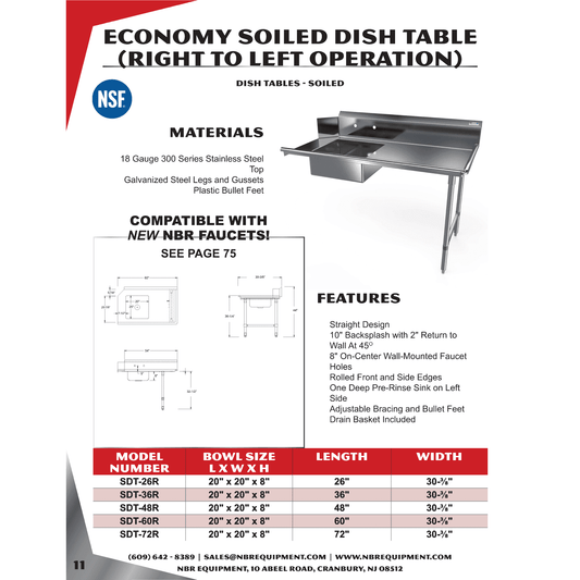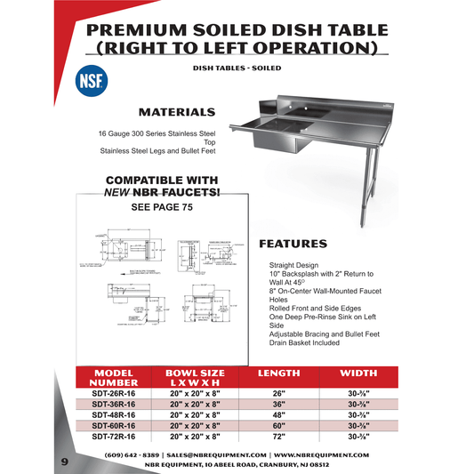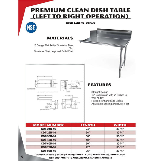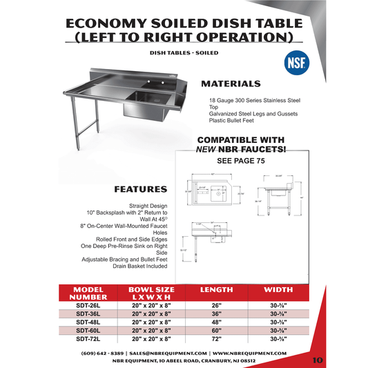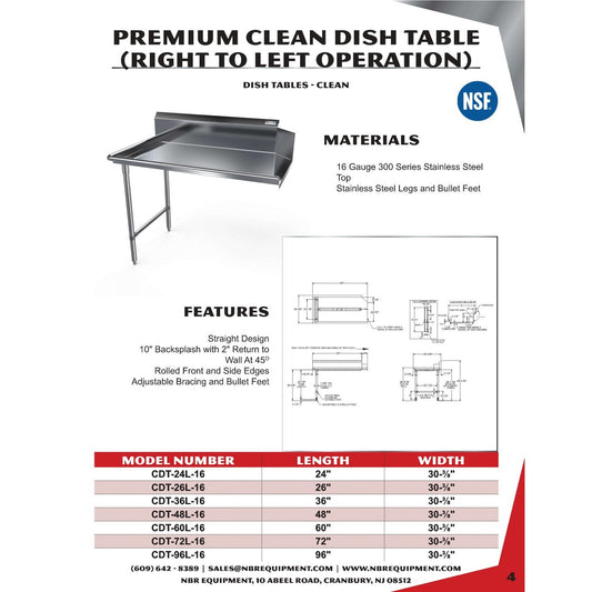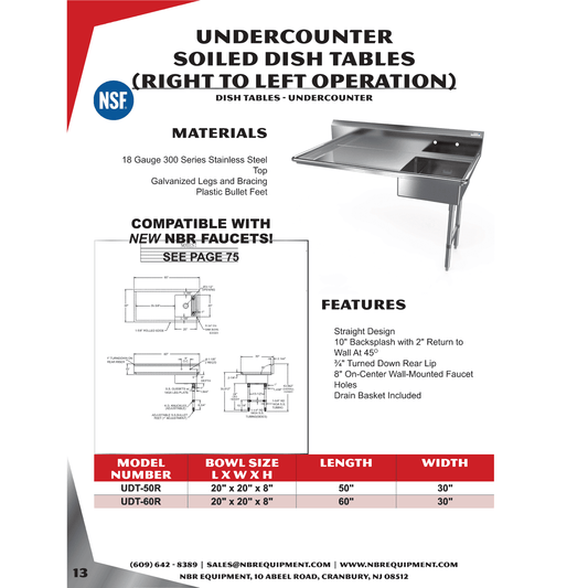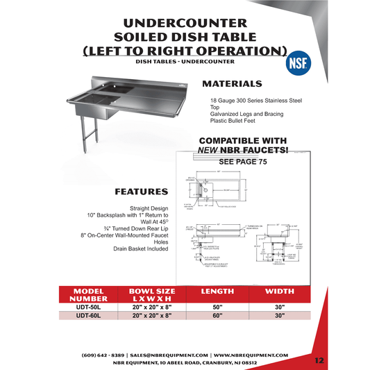 NBR Soiled Undercounter Dishtable (Left to Right)