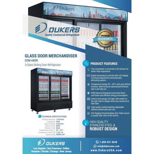 Dukers DSM-68SR Commercial Glass Sliding 3-Door Merchandiser Refrigerator