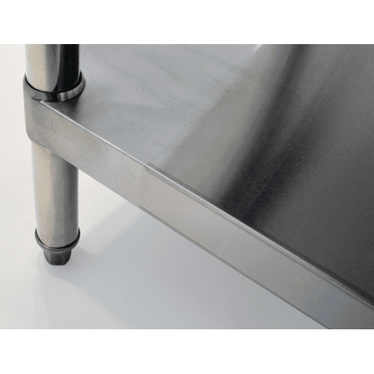 - 18 gauge stainless steel top, body and under shelf