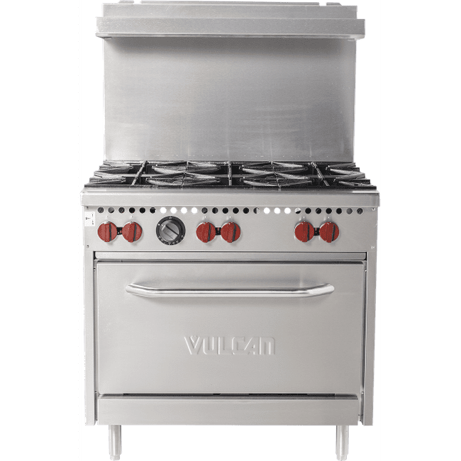 Vulcan SX36-6BP SX Series Stainless Steel 36" Liquid Propane Gas Range 6-28,000 BTU Burners and Space Saver Oven