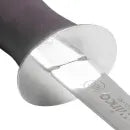 Equipped with a black plastic handle, this oyster opener provides a comfortable grip reducing hand fatigue from extended use. Thanks to its 3" blade and lightweight design, you can easily pry oyster shells open without damaging the tender meat inside. Perfect for restaurants and other food service facilities.