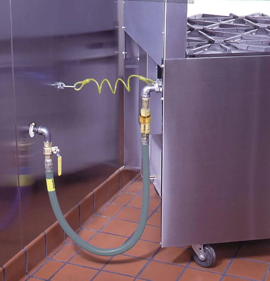 Dormont ReliaGuard® Foodservice Gas Connector Kit, 3/4" inside dia., 48" long, covered with stainless steel braid, coated with gray PVC, (1) quick disconnect, coiled restraining cable with hardware, limited 5 year warrany