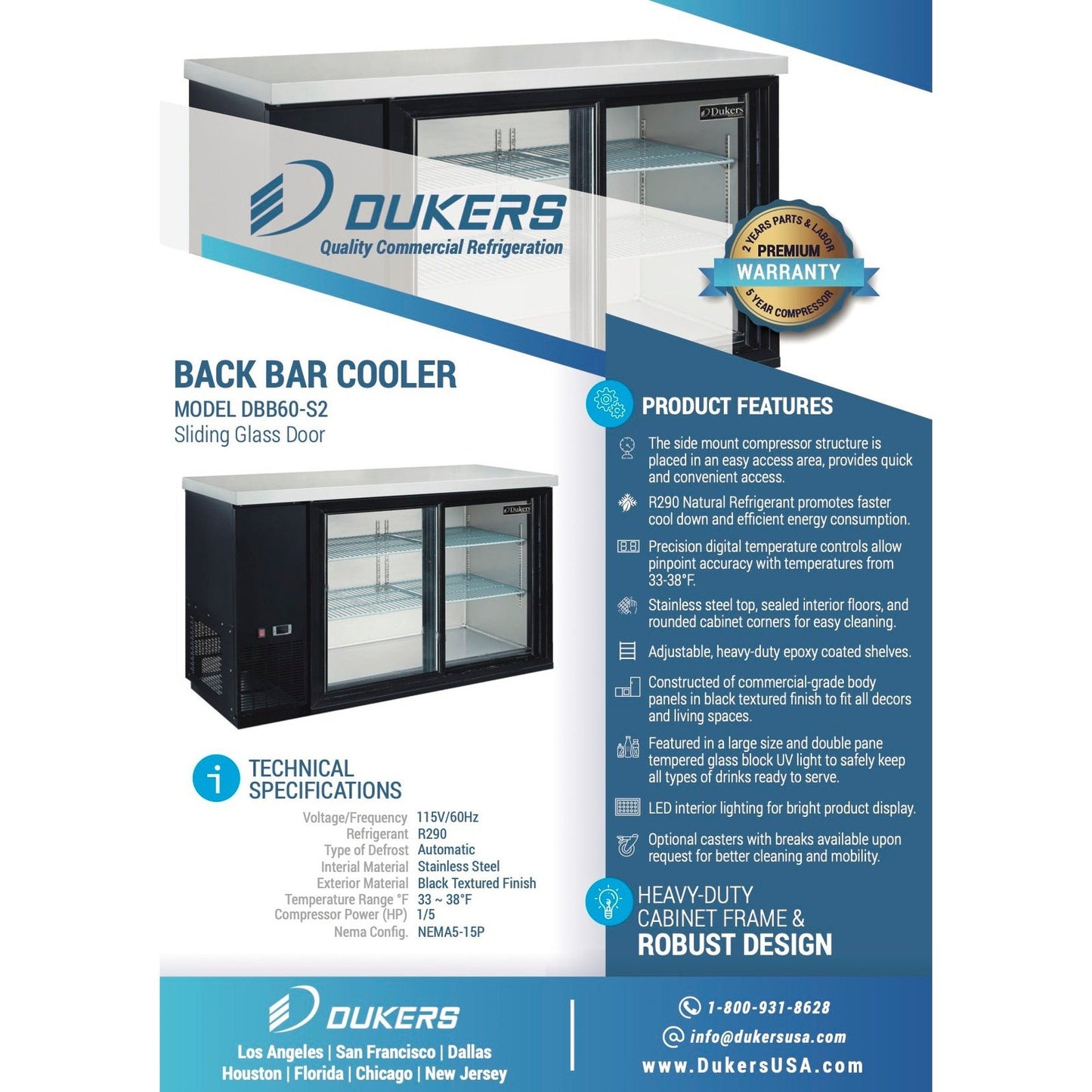 Dukers DBB60-S2 2 Door Bar and Beverage Cooler (Sliding Doors)