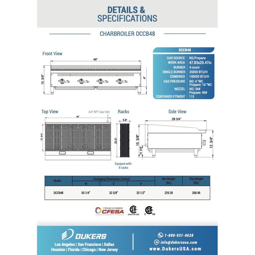 Dukers DCCB48 48" W Countertop Radiant Natural Gas Charbroiler