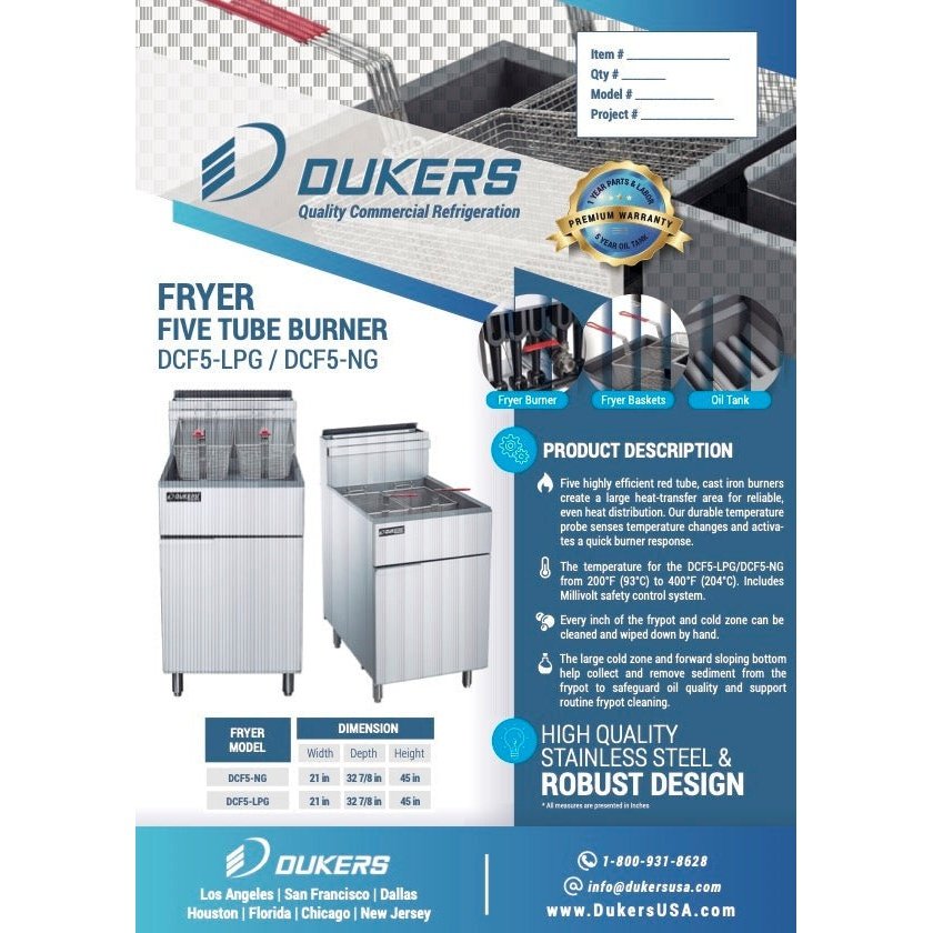 Dukers DCF5-LPG Liquid Propane Gas Fryer with 5 Tube Burners