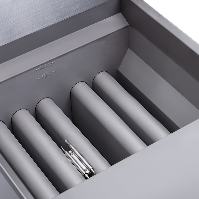 - The large cold zone and forward sloping bottom help collect and remove sediment from the frypot to safeguard oil quality and support routine frypot cleaning.
