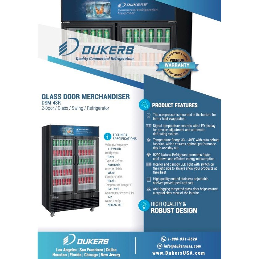 Dukers DSM-48R Commercial Glass Swing 2-Door Merchandiser Refrigerator