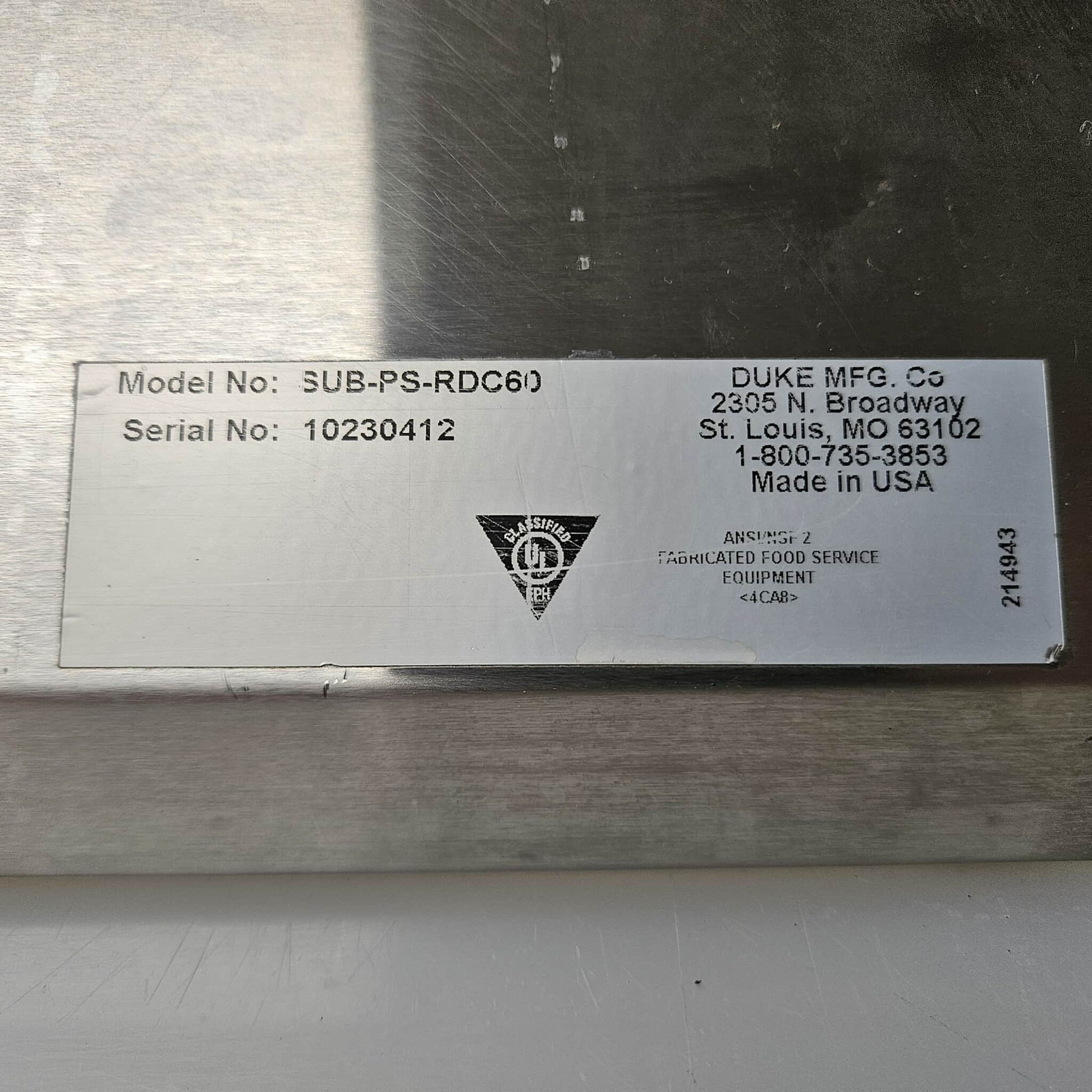 [USED] Duke SUB-CP-TC60 60" Subway Refrigerated Salad/Sandwich Serving Counter
