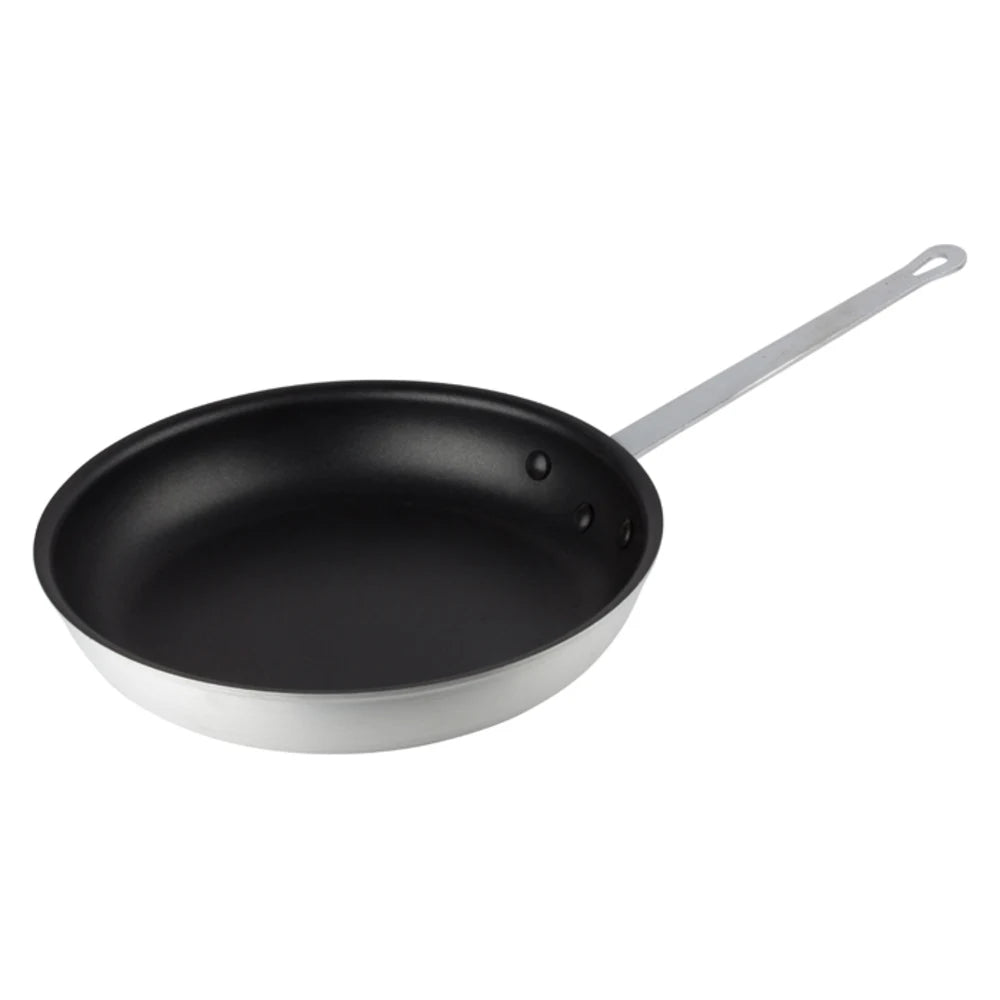 The Winco AFP-14NS Magestic™ frying pan is a versatile tool that helps users fry, sear, and sautée on its 14-inch-diameter cooking surface. Though the Quantum2® nonstick finish eases cleaning and reduces the amount of fat necessary for cooking, it will eventually wear off. Lightweight aluminum makes up the pan's body to prevent users from becoming tired during cooking.
