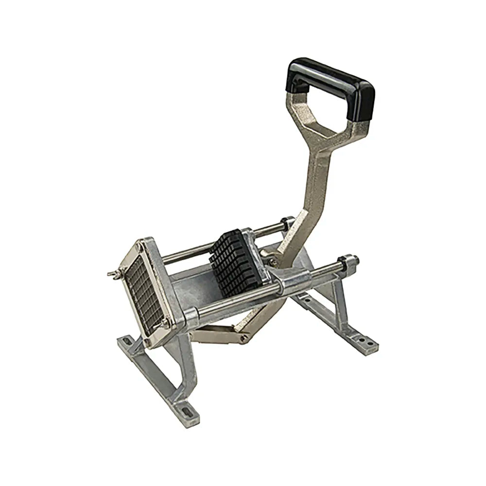 Perfect for preparing freshly cut potato wedges, the Winco HFC-375 quick slice french fry cutter is a must-have tool for home and commercial use. This model features a cast iron body and stainless steel components. For smooth and convenient cutting, this cutter boasts a smooth short throw handle design with a black plastic grip. Designed with a 3/8" blade, this french fry cutter quickly and easily produces uniform slices with a simple lever action movement. This model is also NSF listed.