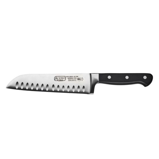 Winco KFP-70 Acero 7" Steel Santoku Knife with Black Handle